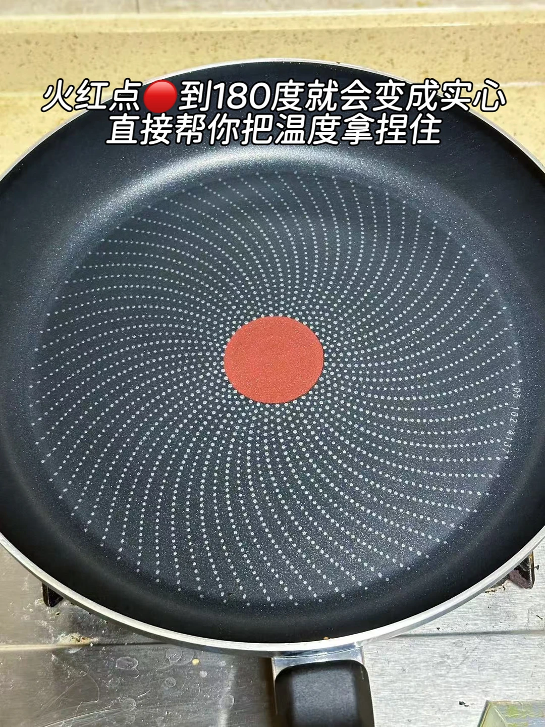 ❷ 重点来了!用我的特福煎锅,它家专利火红点太懂新手了🔥 等红点变实心就说明温度刚好(实心火红点为180°),这时候喷油完全不粘,火候把控零难度,煎出来的蛋饼色泽均匀巨好看