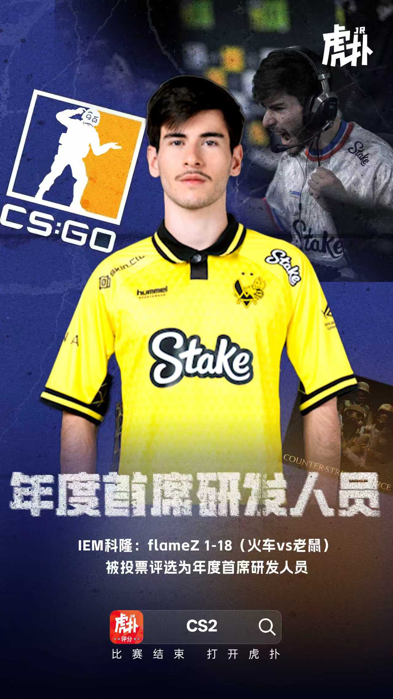 年度首席研发人员:Vitality选手flameZ凭借IEM科隆2025半决赛对阵MOUZ的图二Train打出1-18的战绩,在区内得票率高达89.6%,断档领先获得该奖项。