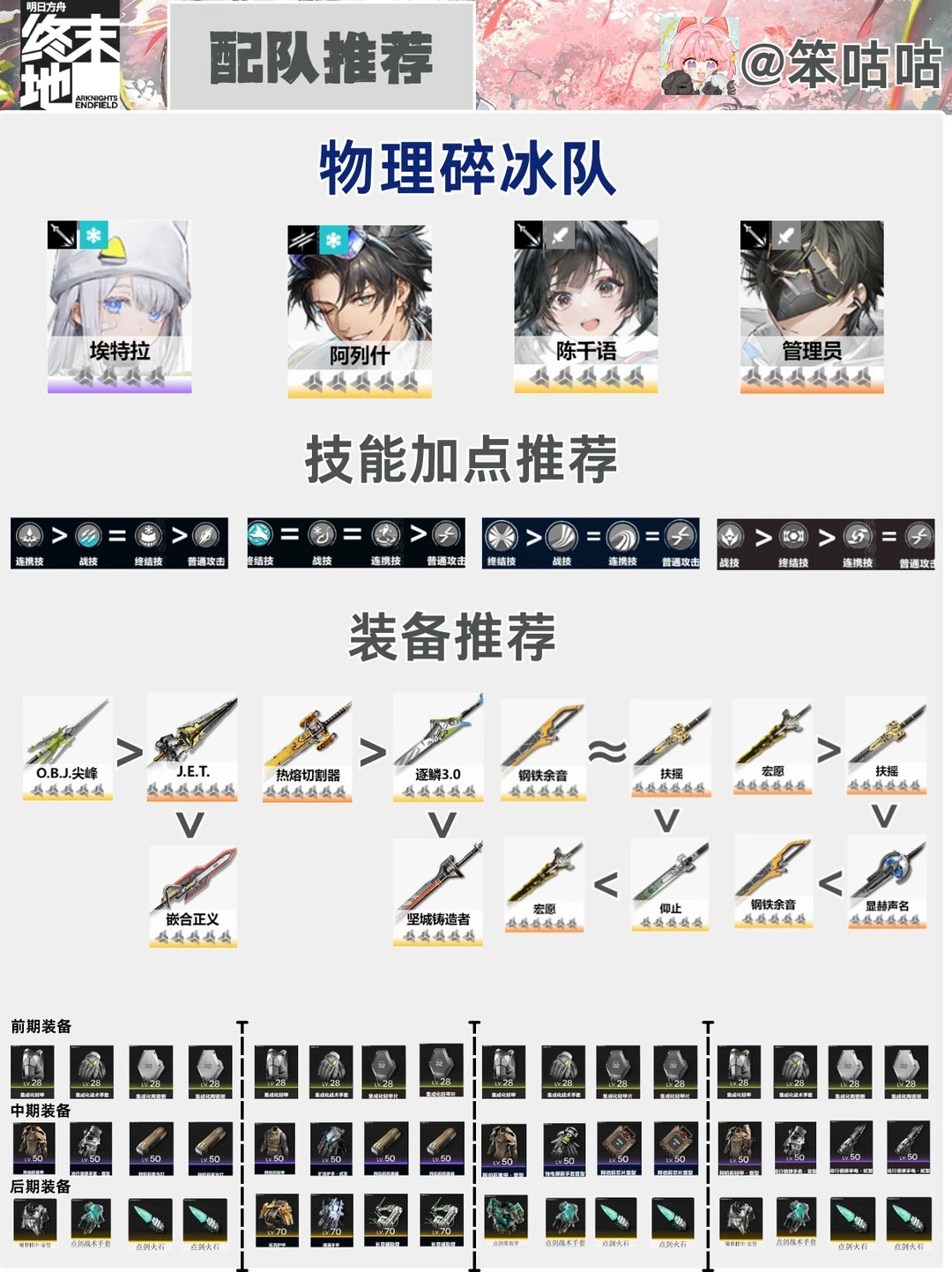 明日方舟终末地 终末地公测 塔卫二通讯 明日方舟终末地攻略 明日方舟终末地配队 笨咕咕来也,本期内容给大家带来(冰队)配队攻略详解~ ------グッ!(๑•̀ㅂ•́)و✧------- 觉得有用的话一定要关关笨咕咕哦! 好了,以上就是本期的全部内容。 ⭐制作不易,严禁任何商业性转载及搬运,转载需标注出处~ ⭐制作难免会有错漏,希望大家多多指出,我会及时修正喵~ ⭐祝大家都能十连双金!