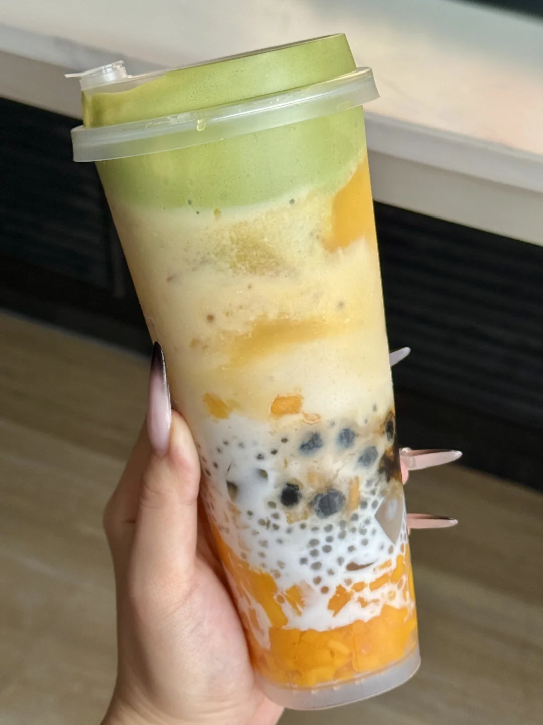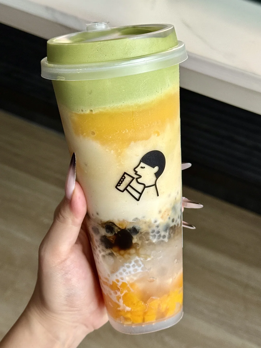 在网上跟风喜茶这样喝也太夯了! 椰椰芒芒加倍芒果果肉🥭➕黑糖波波➕苦抹云顶 少少少甜/少少冰就很ok了,好好喝!抹茶芒果粥的喝法……