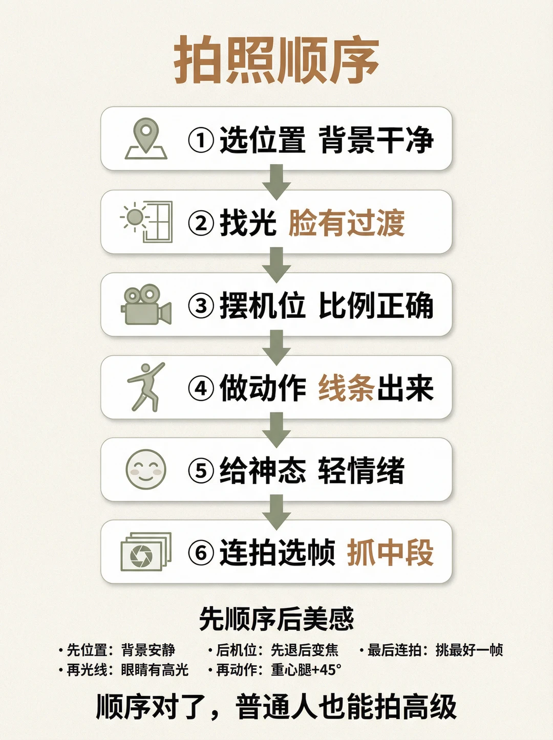 真相是:普通人拍照好不好看,不靠天赋,靠顺序✅