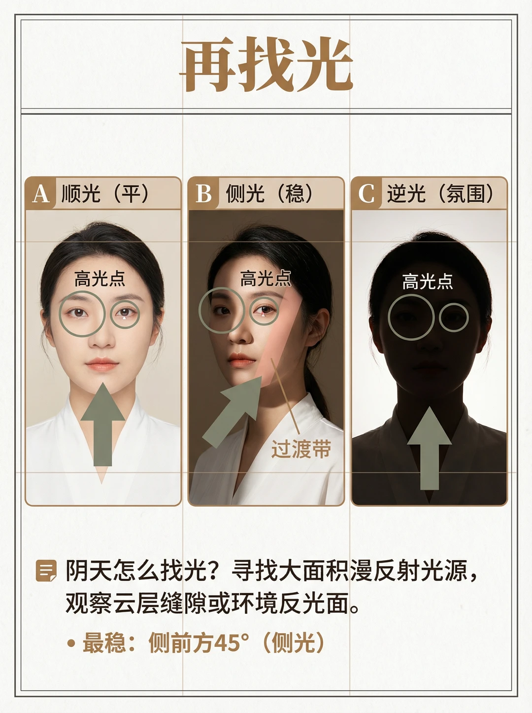 ② 找光:让脸有层次(眼睛有高光+脸有过渡)✨