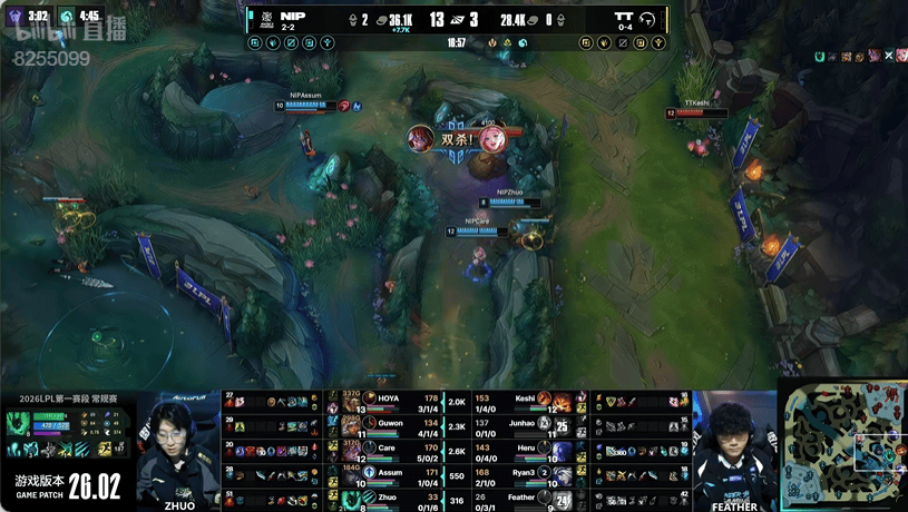 虎扑01月29日讯TT红色方,NIP蓝色方
