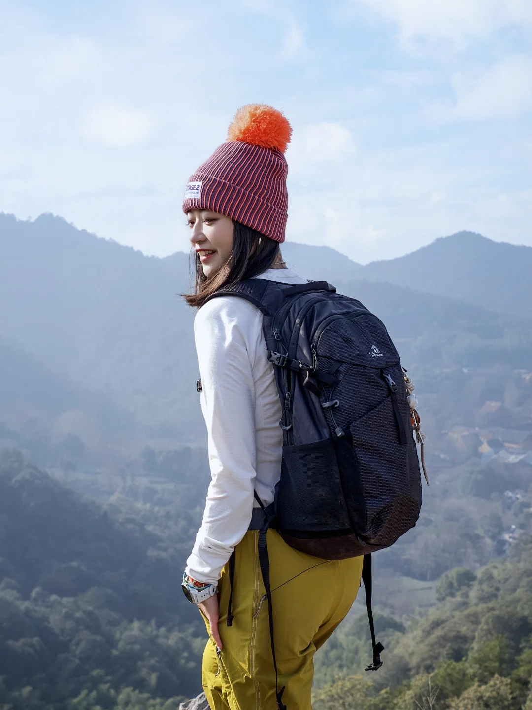 都说冬天的山是另一种随机的浪漫 要么追雪,要么追泥[抠鼻R] 分享我的冬季徒步必备细节和装备清单~ 👣 冬季徒步几个细节小tips 1️⃣ 三层穿衣法是核心 贴身速干层(不要棉质!)➕中间保暖层(抓绒/薄羽绒)➕外层防风防水壳(硬壳冲锋衣),热了逐层脱 2️⃣ 多带一双袜子+手套 湿冷天气脚趾冻麻的感受真的不想再体验!用密封袋装好备用袜,手套建议带触屏内胆+防水外层两副。带件厚羽绒服在终点更换。 3️⃣ 轻量化保温杯 比起夏天的矿泉水,冬天建议背带个500ml保温杯装热水,在山顶喝口暖乎乎热水会很回血! 4️⃣ 防滑装备必须升级 如果有雨雪天,建议冰爪+防水登山鞋,随身带登山杖(记得换雪托) 5️⃣ 注意头部保温和散热 戴一顶冷帽/羊毛帽,脑袋吹风很容易头疼,高海拔地区更是要格外注意头部 6️⃣ 给电子设备“保暖” 手机、充电宝低温会瞬间掉电!贴身存放,或者备用充电宝选大容量。 7️⃣ 下山时间至少提前1小时 冬季天黑早,天黑之后气温立马骤降,而且天黑也是一瞬间的事。冬天徒步记得带头灯,尽量规划在日落前下山。 8️⃣ 结伴!结伴!结伴! 低温环境突发状况更多,不建议单独行动。提前把路线、时间发给家人。 🎒我的冬季一日徒步装备清单 • 穿着:速干内衣套装、抓绒衣、硬壳冲锋衣裤、中高帮防水徒步鞋、羊毛袜 • 背包:伯希和逐光pro登山包 20L(分区超能装——冬天要多带衣物,独立仓和两侧弹力兜超方便,背板透气不闷汗,徒步下来肩背依然干爽。面料防泼耐造,突然飘雪也不慌,还能拆了腰带通勤用,一包到位) • 配件:毛线帽、防晒魔术头巾、防水手套、雪套、冰爪(视路面情况) • 其他:头灯、充电宝、暖宝宝、保温杯、热水、高热量路餐、急救包、救生毯 ✨ 最后的小感悟 冬天徒步追雪非常美,看好天气出发。 享受的前提,是足够的准备和对自然的敬畏。