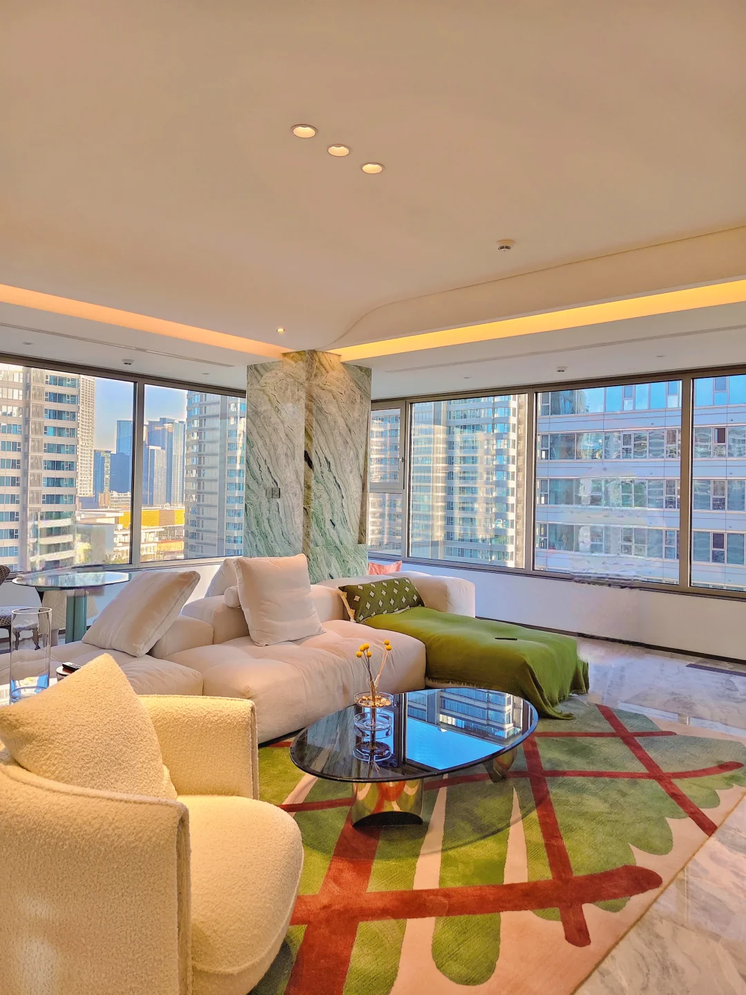 远处南京眼、青奥双子塔尽收眼底,傍晚时分晚风携着绿意入户,站在南北双阳台远眺,金陵城的繁华与静谧完美交融🥰
