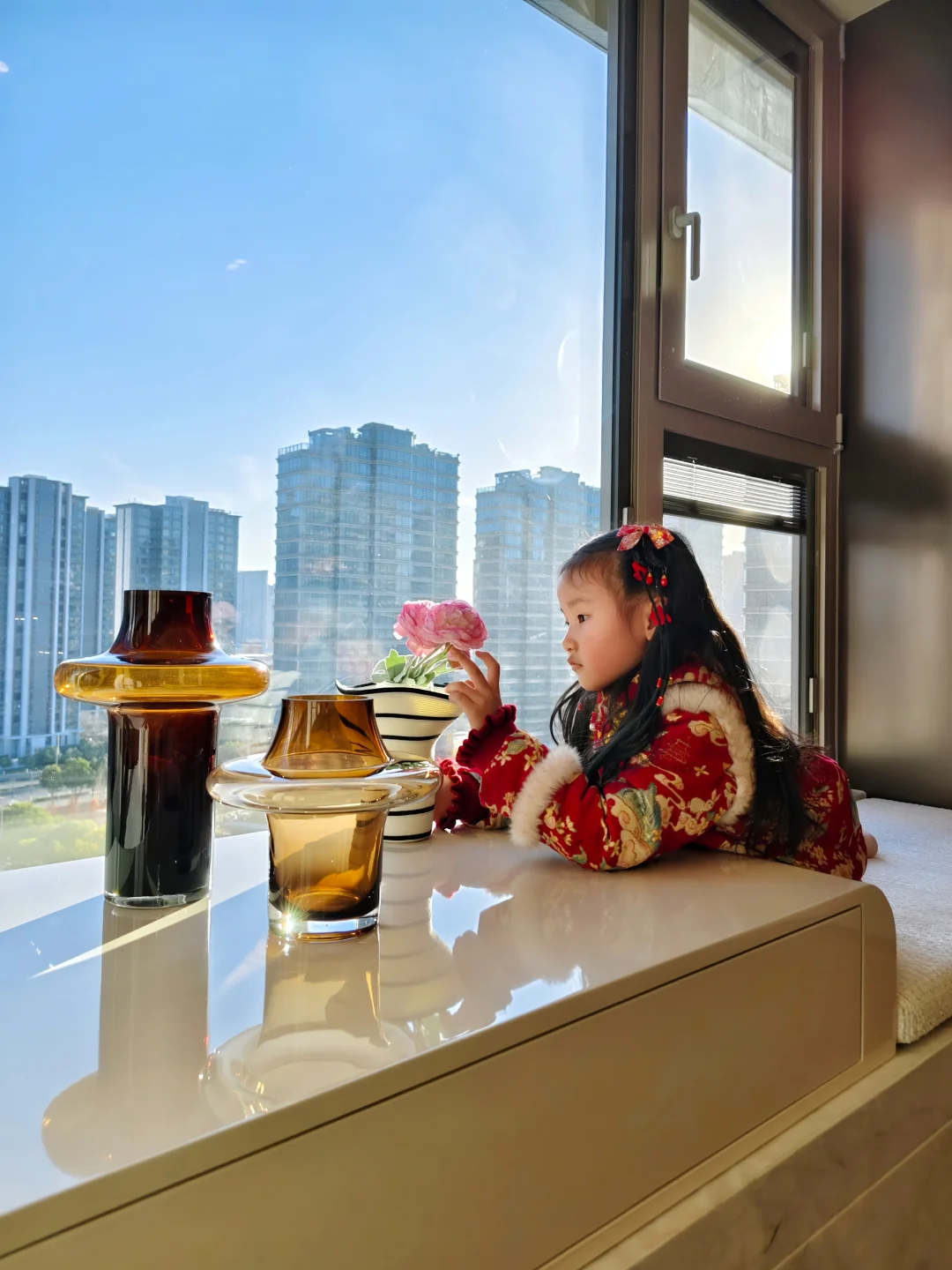 ✨ 小丸子一推开门就惊呼着跑向阳台:“妈妈,这落地窗也太美了吧!”