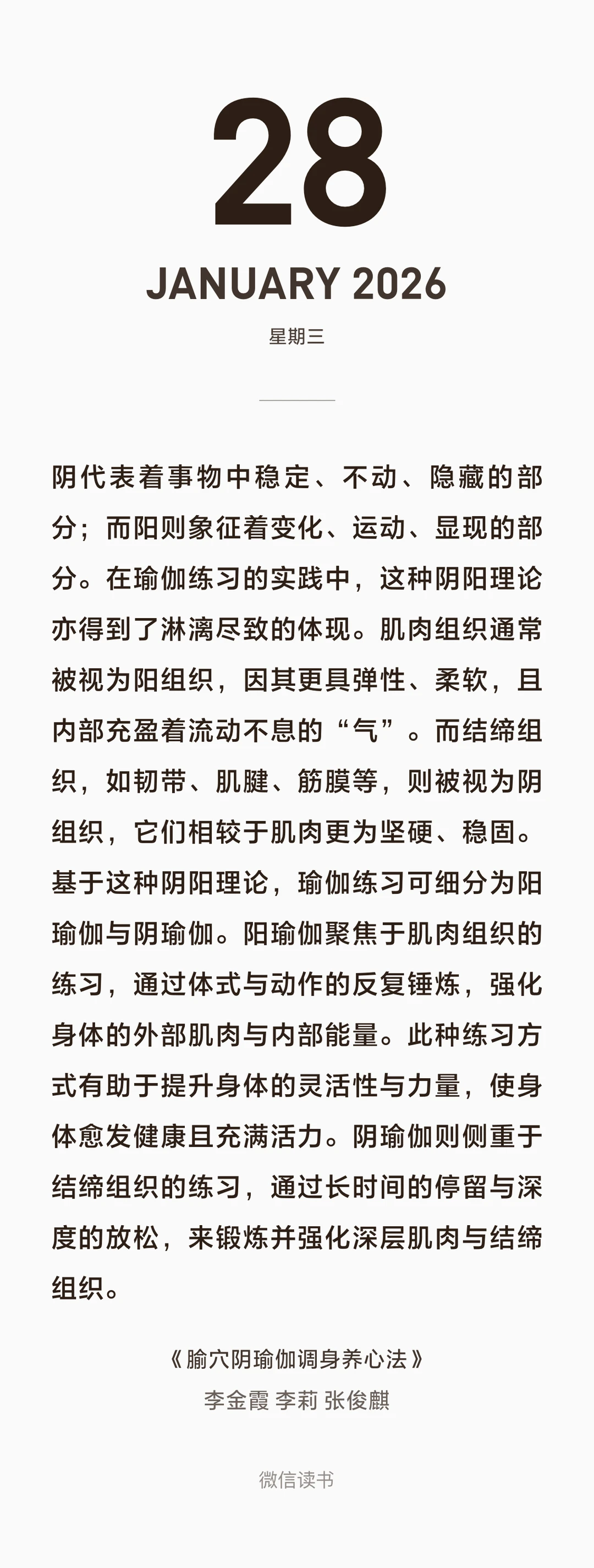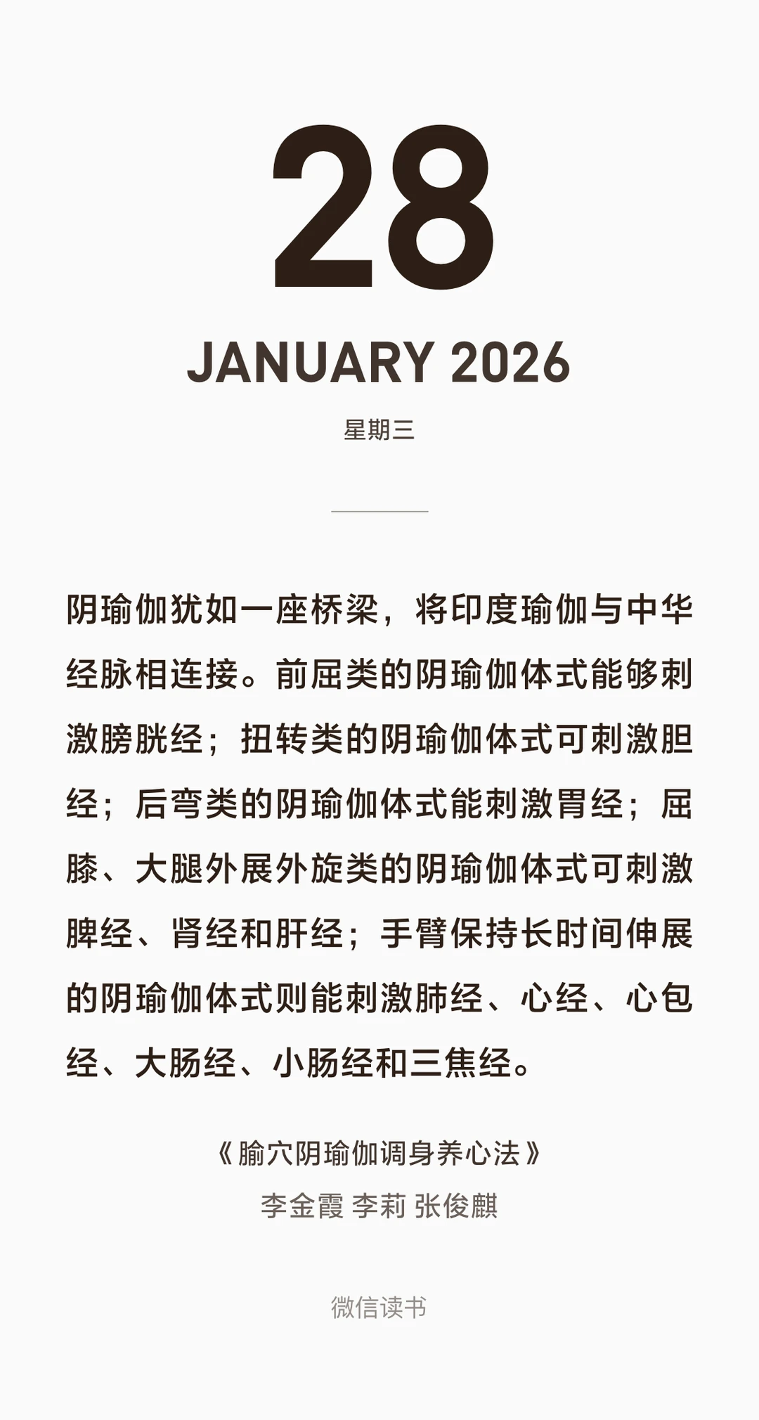 经常有人问我阴瑜伽是什么?我想这本书能给你答案,作为中国人,我还挺意外这个流派居然是外国人创立融合的。 《腧穴阴瑜伽调养身心法》以“阴瑜伽+中医腧穴”为核心,将中医经络腧穴理论融入阴瑜伽体式,形成“理论—体式—应用”的完整体系,适合零基础入门,助力中医瑜伽内容创作。 阴瑜伽的底层逻辑 阴瑜伽的长时间停留、深层拉伸特性,与中医“经络气血疏通”“腧穴刺激调理”理念高度契合,通过体式+呼吸+意念协同刺激腧穴,实现经络—脏腑—身心的整体调养。