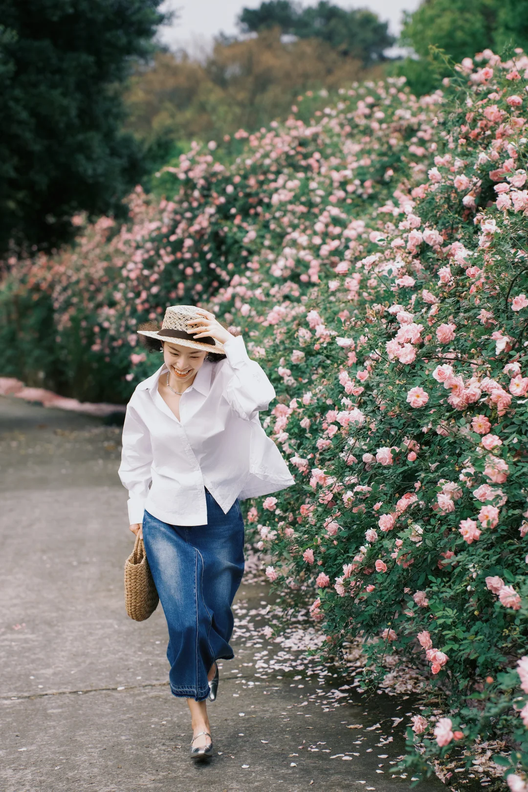 金果园的蔷薇一年比一年更美,延绵2km的蔷薇花墙,花量又大花朵又饱满