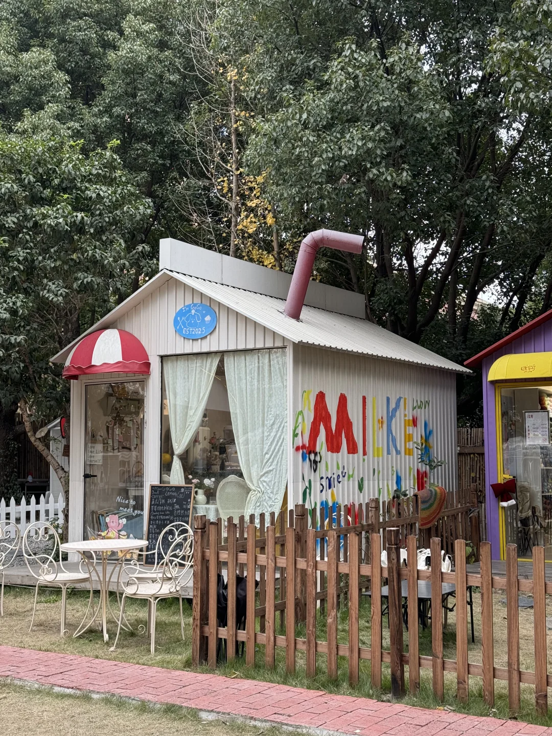 . 一家藏在市区的木屋咖啡店🌳 可以坐在湖边听着潺潺水声 喝咖啡放空聊天☕️ 店里的布置也蛮出片的 . 咖啡店在鄞州一个创意小社区里 面积不大 整体装置可可爱爱 hellokitty 牛奶盒造型房子 手绘树洞🐿️ 有餐厅 咖啡店 手工饰品店 去的时候还碰见了中间草坪的亲子互动 .