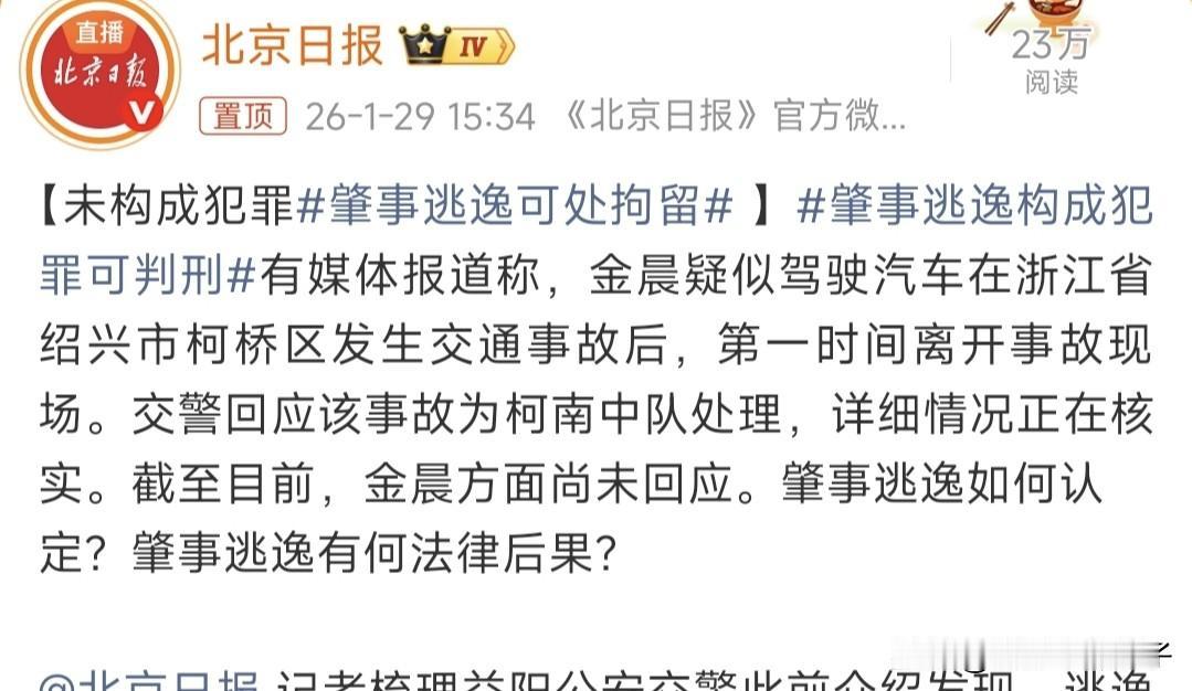 金晨的团队估计乱成一锅粥了,有网友爆料,狗仔放瓜之前曾提前沟通,价格没谈拢! 这事确实有点奇怪,按照狗仔的惯例,一般都是先预告大瓜,这一次,直接爆料,不合乎常理。 所以,这位网友的爆料,很可能是真的,如果这样,团队估计要后悔了,原本花钱就能解决,闹出这么大的麻烦。 不过,仔细想想,如果这件事,真能让明星塌房,也不至于没谈拢。 现在,网友热议问题,肇事以后,为何要让助理顶包,正常情况下,如果选择私了,又有保险,根本不算事,结果整复杂了,怀疑可能有别的问题。 网上还晒出疑似肇事现场照片,如果还有功夫拍照,应该没啥大问题。 金晨不仅有很多代言,还有几部待播剧,如果有什么插翅,损失可大了。 据媒体报道,交警部门已经在核实详细情况,还是等待调查结果吧!