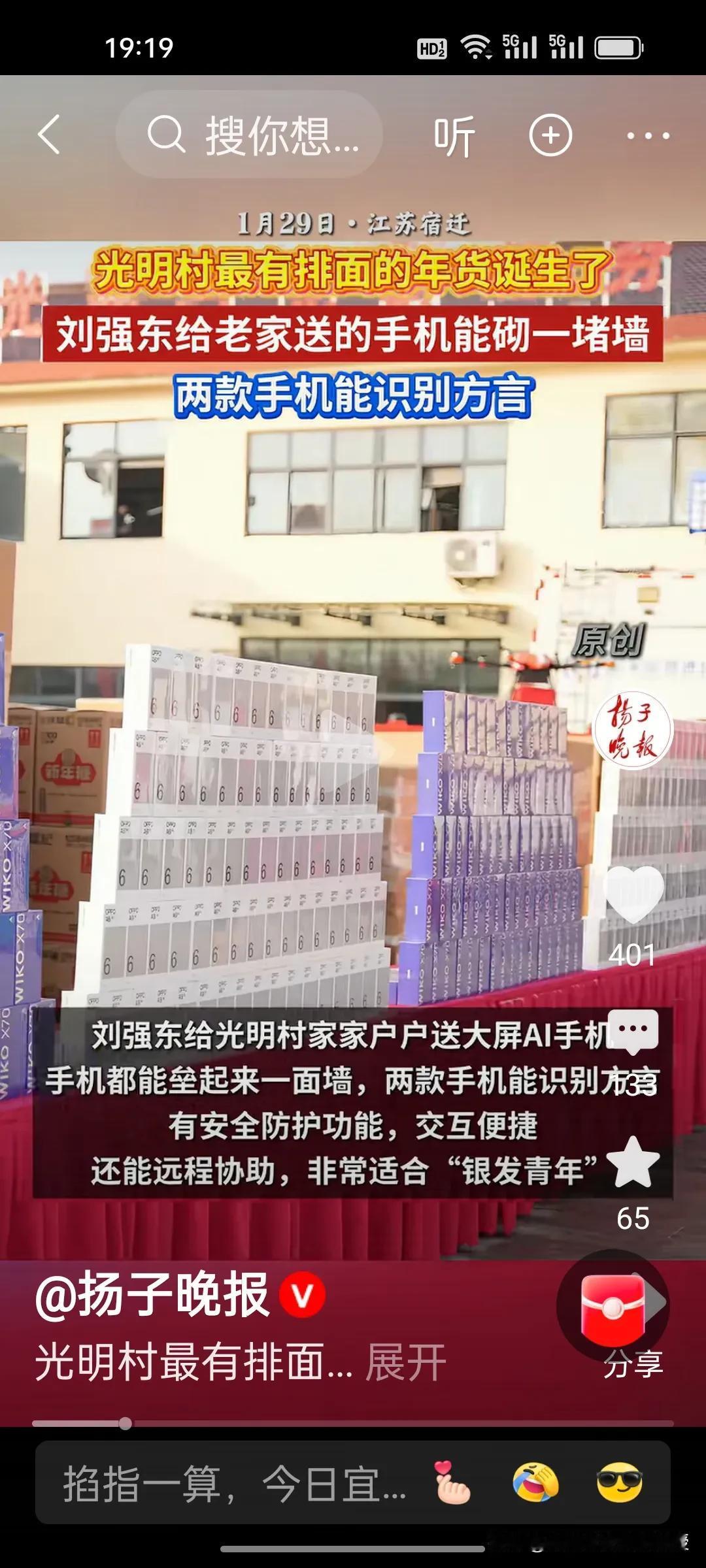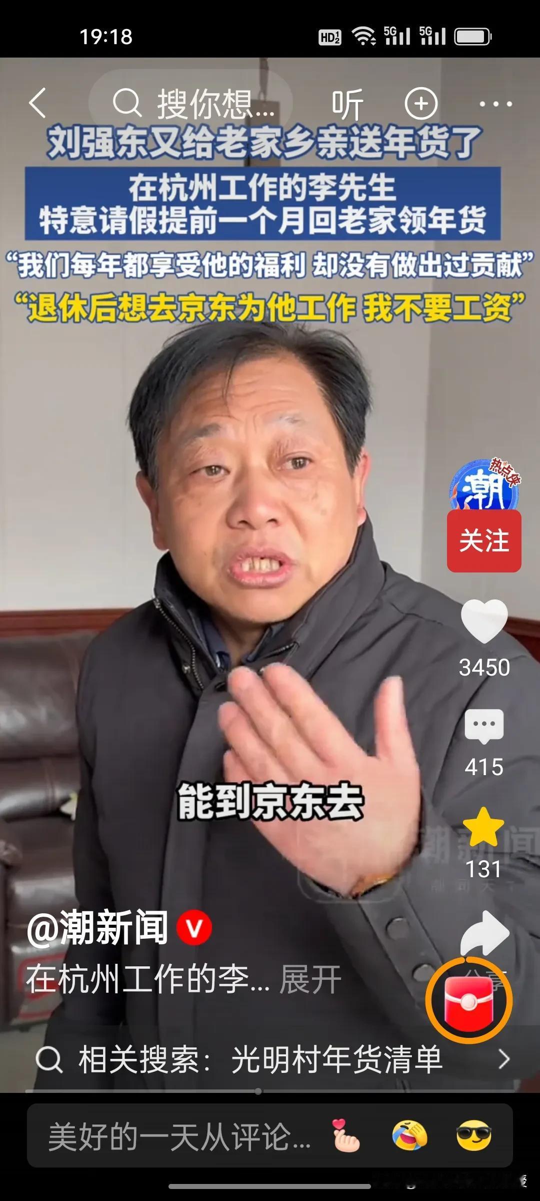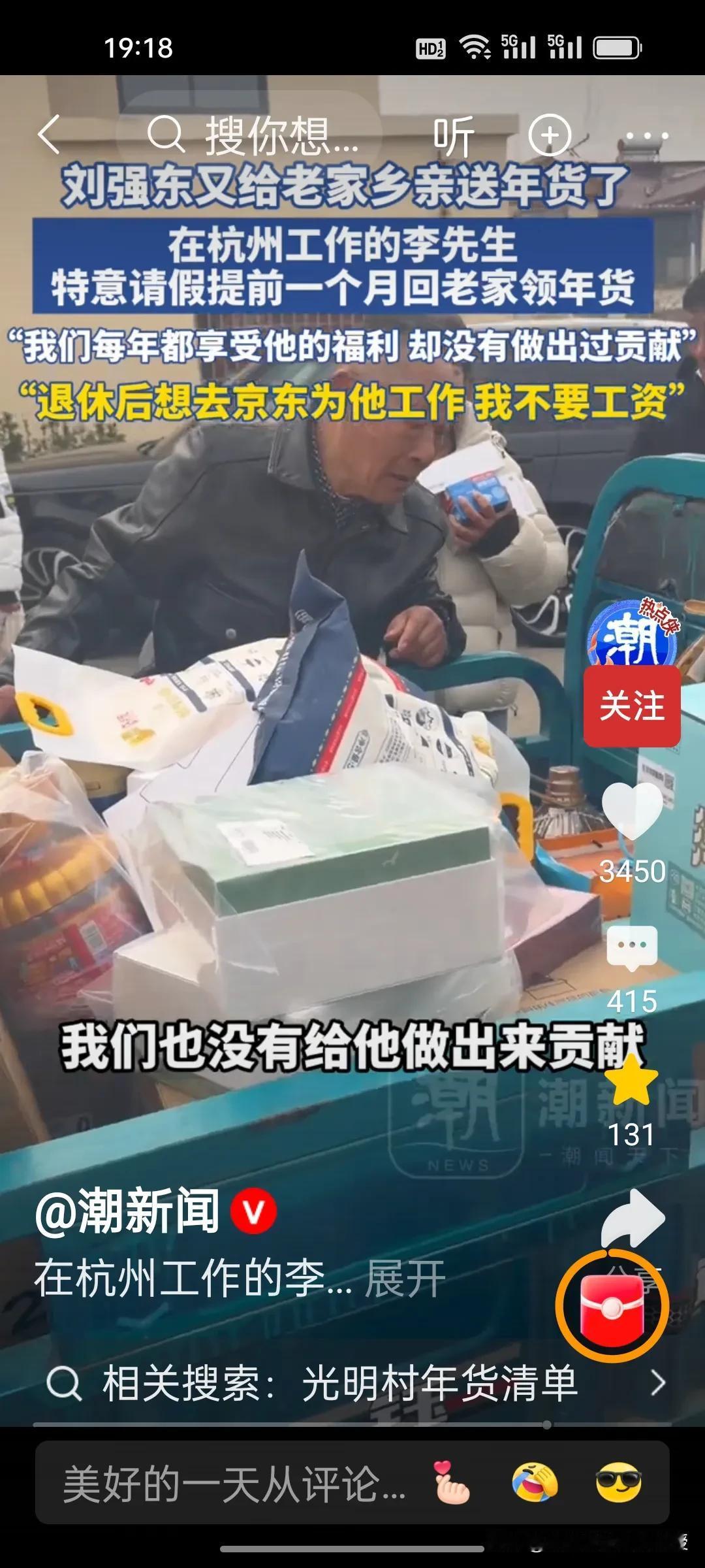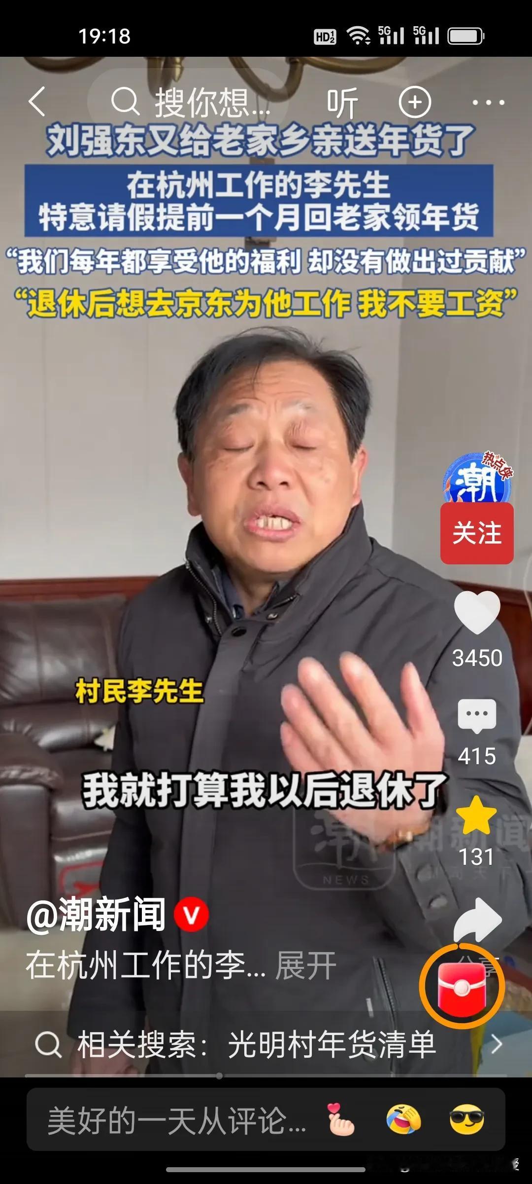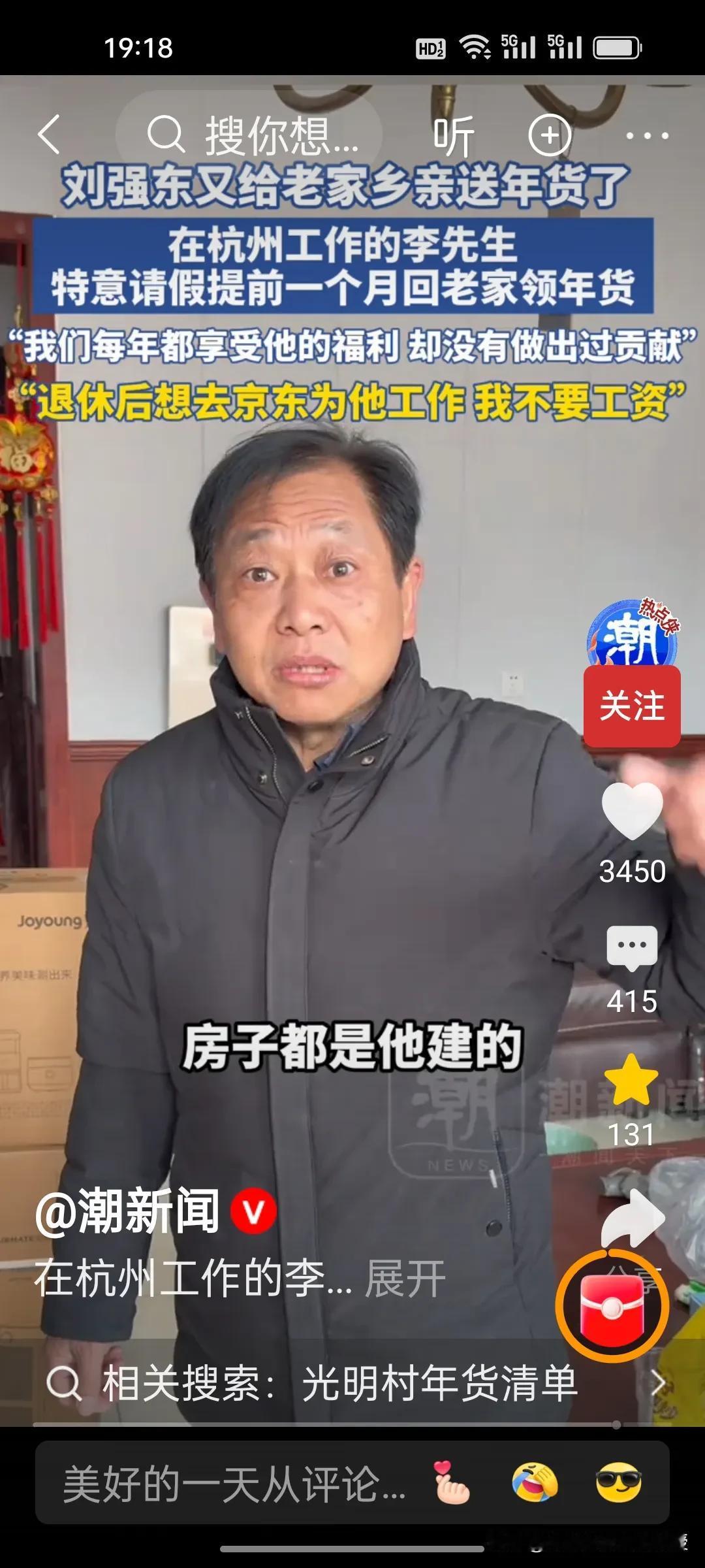 整个光明村的人对刘强东都是非常感激的。有一位村民说,每年都在吃刘强东的福利,自己也没有做贡献,房子都是他建的。退休后要到京东帮忙,不要工资。还有一位老大爷面对接记者提问如果有一年刘强东不发年货怎么办?这位大爷说,“发是人情,不发是本分”,一句话体现出其通透的处世智慧。 光明村人知感恩、明事理,这份通透豁达与淳朴厚道,正是刻在骨子里的珍贵素养与高尚品格。