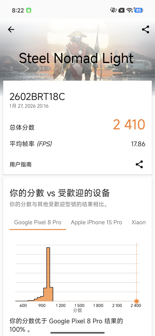 3DMARK的SteelNomadLight跑分为2410,WildLifeExtreme跑分为6669。