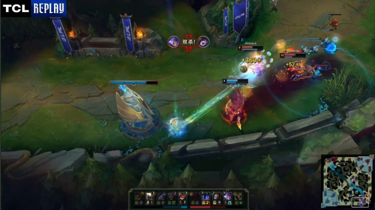 [19:41]上路团战,xiaohu辛德拉交出金身拖到队友到位让Jiejie潘森反杀HongQ发条,后者战绩0-3-6。