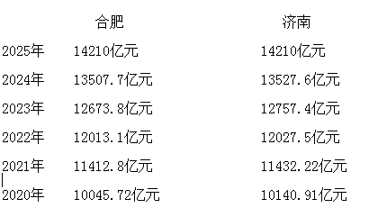 大皖新闻讯1月29日,大皖新闻记者了解到,2025年,安徽省合肥市与山东省济南市地区生产总值(GDP)均为14210亿元。自从2020年双双进入“万亿城市”行列以来,合肥与济南的GDP每年都在伯仲之间,“双城对比”一直吸引广泛关注,而数据显示,2025年,双城打成平手。
