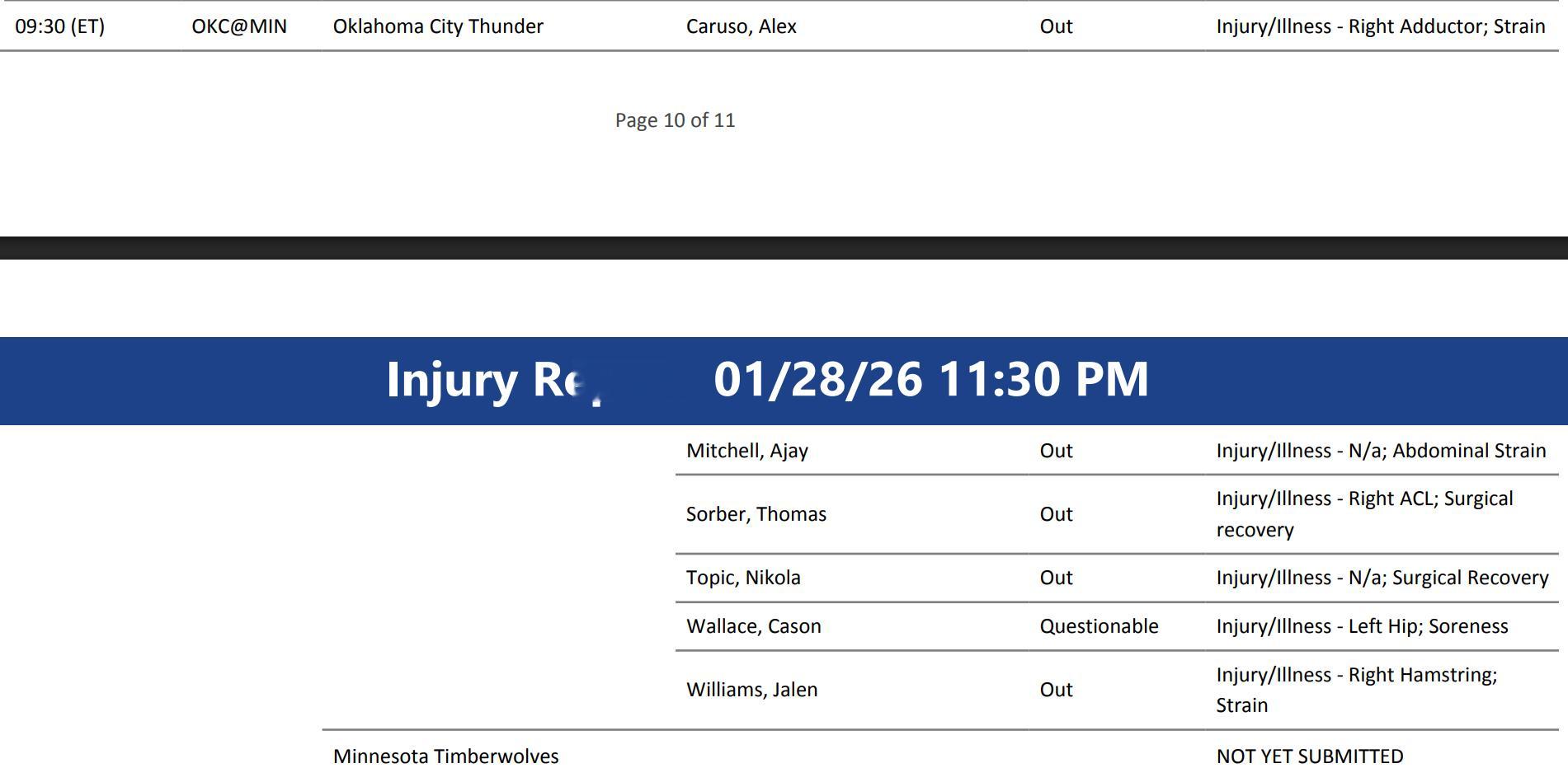 明天上午十点半,雷霆将在客场挑战森林狼,亚马逊全美直播。你雷会身穿橙色球衣,对手是黑色球服。森林狼今日在客场击败独行侠。根据伤病报告,卡森华莱士出战成疑,杰伦威廉姆斯、卡鲁索、米切尔、托皮奇和索伯依旧是缺席,哈滕即将迎来复出!双方赛季前两场各自拿下主场比赛,上一场芬奇早早“自爆”离场。编辑by蓝色狂潮OKC雷霆vs森林狼雷霆