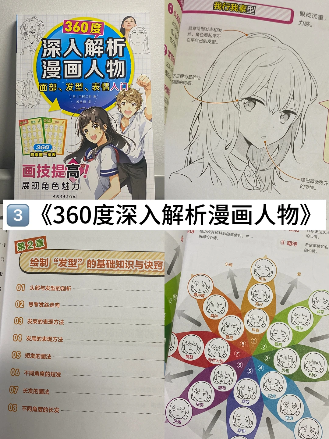 今天分享三本学习画动漫小人儿的书📘 1️⃣《Q版迷你角色基础篇》里面都是qq人的模版,套模版很方便~轻松掌握迷你角色绘画秘籍~ 2️⃣《Q版人物这样画》相比上一本,有更多的颜色以及服饰教学细节,基础篇》教程细致,对新手超友好,跟着画,轻松掌握迷你角色绘画技巧,冲就完事儿! 3️⃣《360度深入分析漫画人物》之前分享过这本,难度技术会更加进阶一些,融合了漫画人物的面部,表情和发型的绘画技巧,一个个形象鲜明的人物就创造出来啦,画oc也可以参考哦~