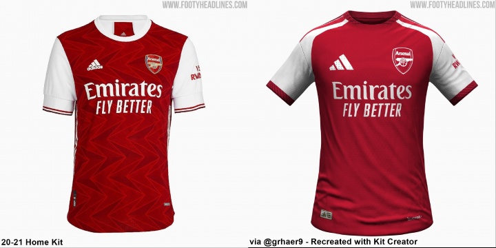 双红配色:主体标准为阿森纳传统的红色,衣领、袖口、肩部中的条纹为深酒红,这是阿森纳主场球衣自20-21赛季后首次启用双红配色。
