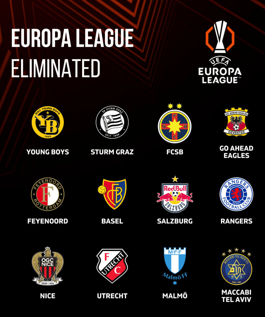 荷甲有三队在这一阶段出局,尼斯则是本赛季欧联唯一在联赛阶段就被淘汰的五大联赛球队。