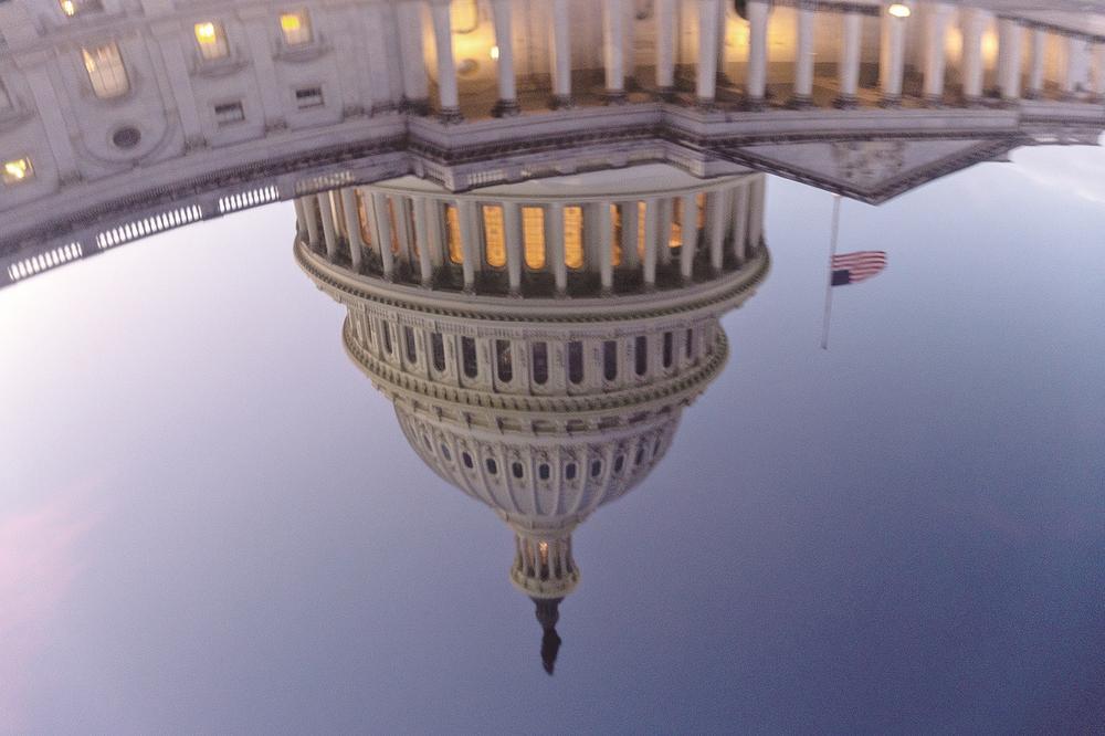 2025年11月,美国联邦政府“停摆”期间,在美国首都华盛顿拍摄的汽车引擎盖上的美国国会大厦倒影。