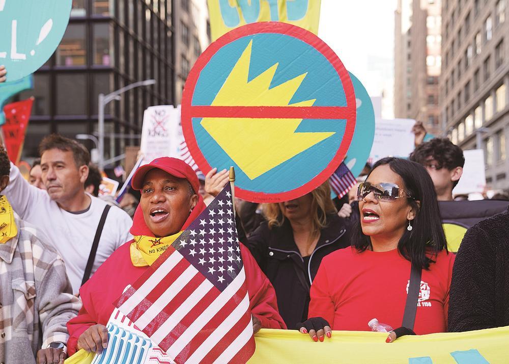 日前,民众在纽约参加示威游行活动,反对政府多项政策。