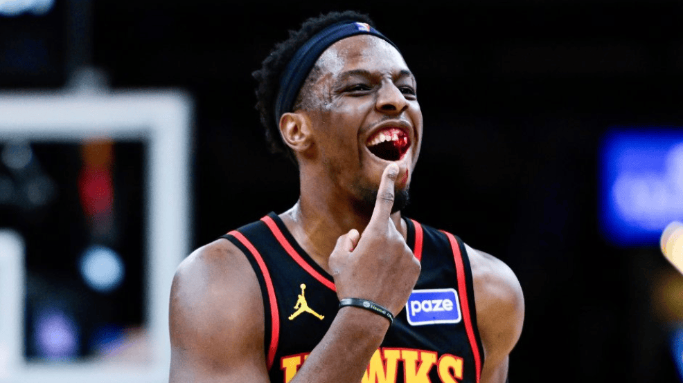 在昨日老鹰与凯尔特人比赛里,奥孔古被凯尔特人前锋杰伦-布朗挥肘打到嘴部,造成牙齿脱落。