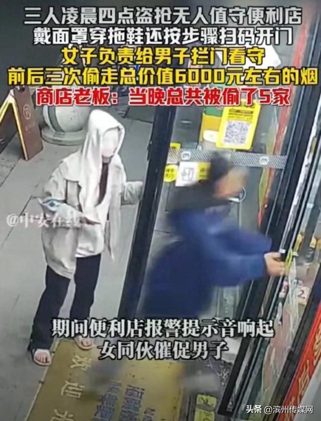 近日,湖南3名年轻人凌晨四点开车盗抢一家无人值守便利店,全程戴面罩穿拖鞋还按步骤扫码开门。