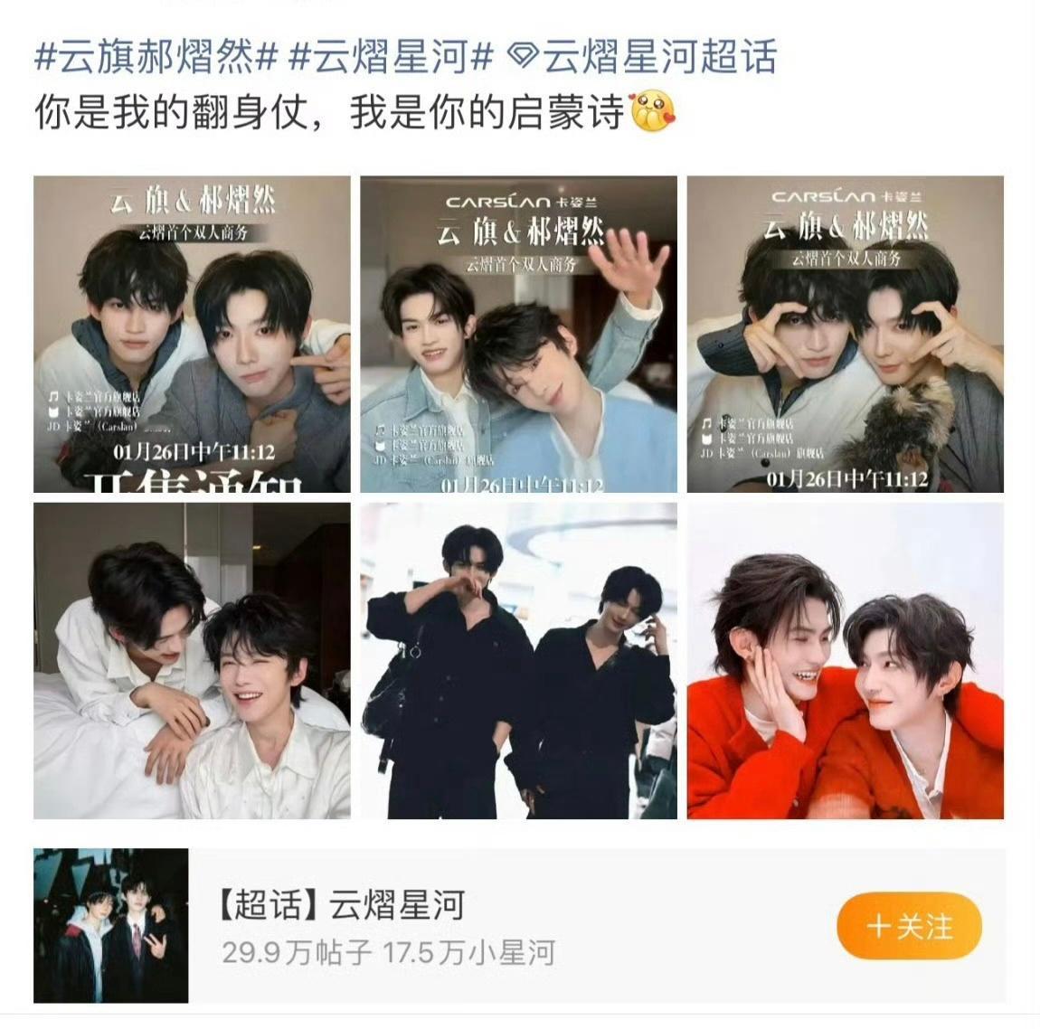云熠星河cp粉用了展丞cp粉原创应援金句:“你是我的翻身仗,我是你的启蒙诗”,现
