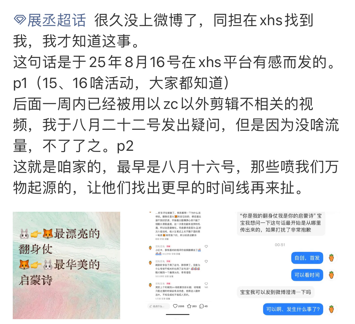云熠星河cp粉用了展丞cp粉原创应援金句:“你是我的翻身仗,我是你的启蒙诗”,现在展丞cp粉原创者出来发声了。展丞