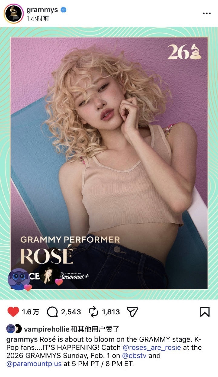 朴彩英出席格莱美表演嘉宾 朴彩英确认出席第68届格莱美并担任表演嘉宾,历史第一个在格莱美表演的kpop女歌手✨