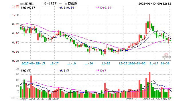 1月30日,金融科技ETF(159851)开盘跌0.69%,报0.862元。金融科技ETF(159851)重仓股方面,同花顺开盘跌0.42%,东方财富跌0.17%,指南针跌0.27%,恒生电子跌0.99%,润和软件跌0.93%,新大陆跌0.60%,东华软件跌0.80%,广电运通跌0.61%,银之杰跌1.18%,四方精创跌0.31%。