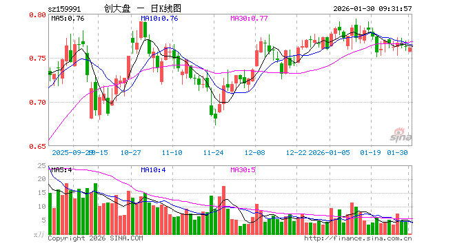 1月30日,创大盘ETF(159991)开盘跌0.66%,报0.757元。创大盘ETF(159991)重仓股方面,宁德时代开盘涨1.90%,中际旭创涨0.38%,新易盛跌1.15%,东方财富跌0.17%,阳光电源跌0.50%,胜宏科技跌0.66%,汇川技术跌0.25%,迈瑞医疗跌0.03%,天孚通信跌1.39%,亿纬锂能涨0.00%。