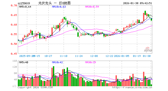 1月30日,光伏ETF浦银(159609)开盘跌0.63%,报0.630元。光伏ETF浦银(159609)重仓股方面,特变电工开盘跌0.43%,隆基绿能跌1.01%,阳光电源跌0.50%,TCL科技跌0.40%,通威股份跌1.36%,迈为股份涨0.09%,德业股份跌0.98%,正泰电器跌0.30%,TCL中环跌1.22%,捷佳伟创跌1.69%。