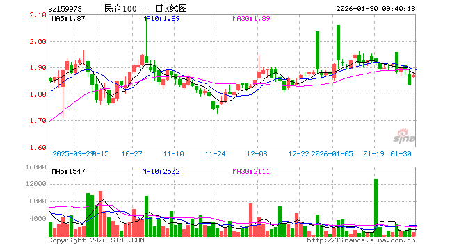 1月30日,民企ETF(159973)开盘涨1.69%,报1.863元。民企ETF(159973)重仓股方面,宁德时代开盘涨1.90%,中际旭创涨0.38%,新易盛跌1.15%,东方财富跌0.17%,美的集团跌0.36%,恒瑞医药跌0.19%,比亚迪跌0.04%,阳光电源跌0.50%,立讯精密跌0.54%,汇川技术跌0.25%。