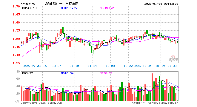 1月30日,深证50ETF富国(159350)开盘涨0.00%,报1.480元。深证50ETF富国(159350)重仓股方面,宁德时代开盘涨1.90%,中际旭创涨0.38%,新易盛跌1.15%,美的集团跌0.36%,东方财富跌0.17%,立讯精密跌0.54%,阳光电源跌0.50%,比亚迪跌0.04%,五粮液涨0.00%,北方华创跌0.62%。