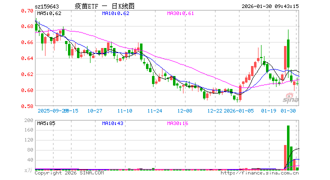 1月30日,疫苗ETF(159643)开盘跌0.33%,报0.608元。疫苗ETF(159643)重仓股方面,复星医药开盘涨0.00%,长春高新跌0.10%,智飞生物跌0.89%,沃森生物跌0.62%,万泰生物跌1.00%,华兰生物跌0.19%,昭衍新药涨1.02%,丽珠集团涨0.14%,辽宁成大跌0.54%,康泰生物涨0.76%。