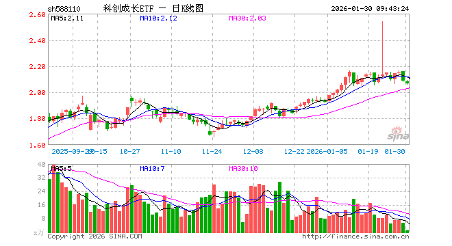 1月30日,科创成长ETF(588110)开盘跌0.24%,报2.081元。科创成长ETF(588110)重仓股方面,海光信息开盘涨0.00%,寒武纪跌0.00%,拓荆科技跌0.76%,源杰科技跌2.15%,九号公司跌4.50%,国盾量子跌0.03%,仕佳光子跌1.31%,百利天恒涨1.82%,思特威涨0.10%,铂力特跌0.96%。