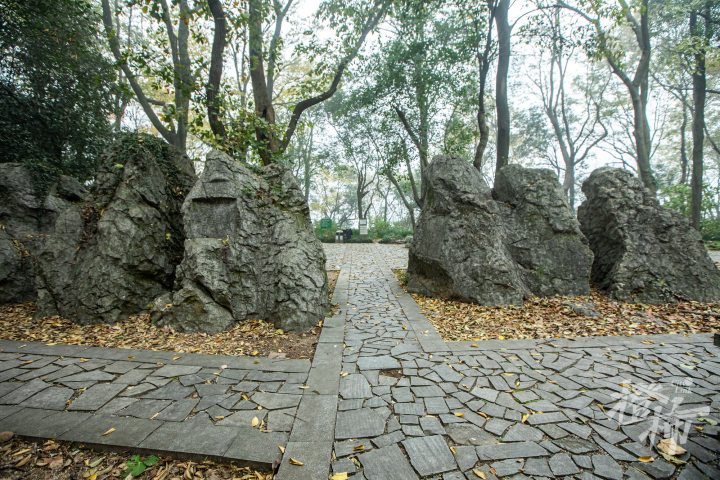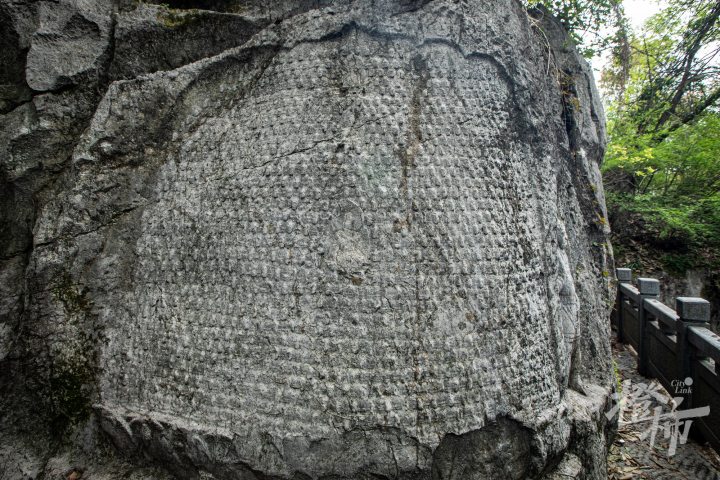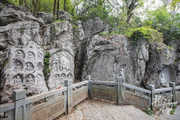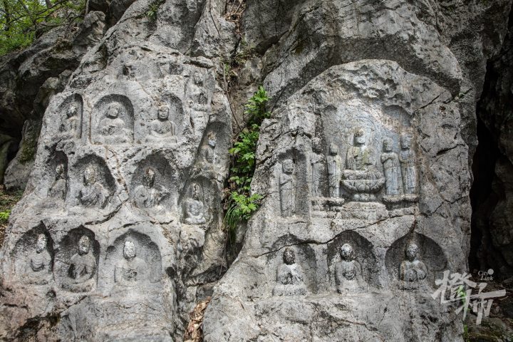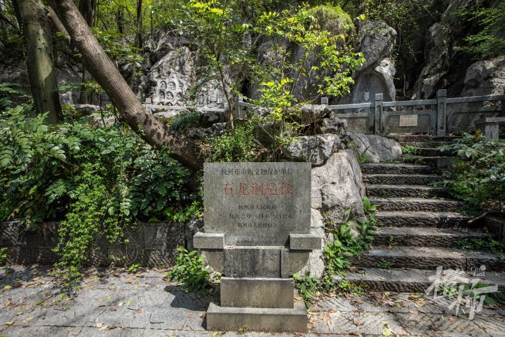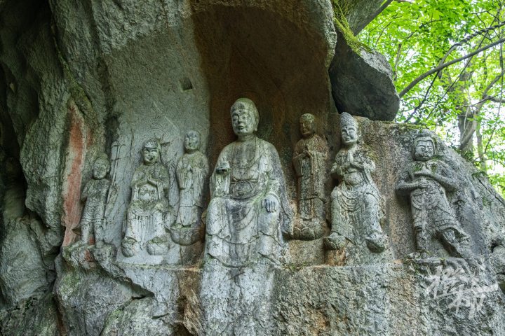 九曜山在西湖西南面,与玉皇山连通,山下就是著名的太子湾公园。九曜山西侧的一条“野路”,入口在虎跑路四眼井的一处停车场,从这条路爬到半山腰,会看到一组造像。