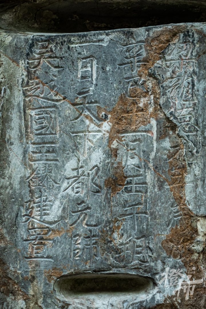 其中有一方摩崖题刻。题刻纵77厘米,横62厘米,内容为:“梁龙德元年岁次辛巳十一月壬午朔一日,天下都元帅吴越国王镠建置。”这方题刻是吴越国王钱镠于后梁龙德元年(921年)十一月初一日所书。魏祝挺认为,阴历十一月一日,距离冬至日不远,可能是为当年冬至日举行的祭祀所用,类似祭天。