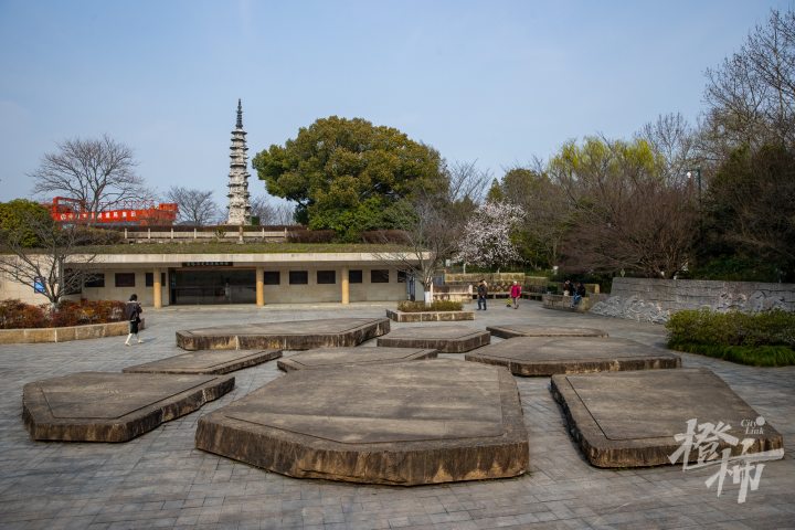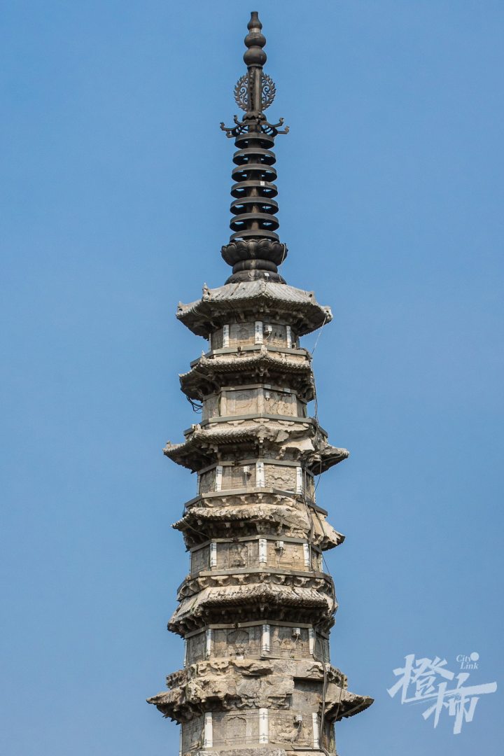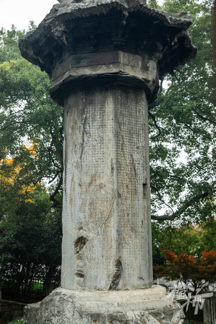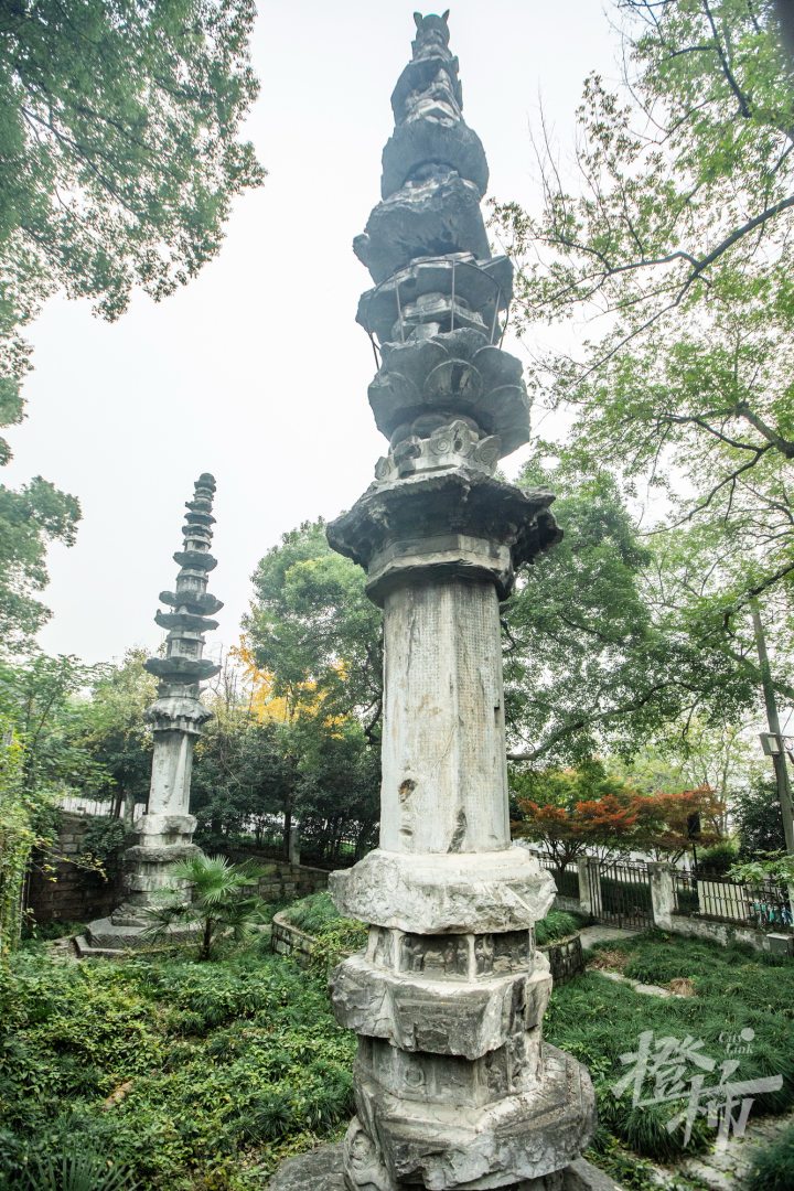 梵天寺经幢位于市井烟火的馒头山社区。这里的“幢”,读chuáng,是中国古代宗教建筑,高耸的石塔写满经文,一般成对出现。梵天寺经幢高约15米,两座经幢上依然可以清晰看到印刻的佛像与经文,注有“乾德三年乙丑岁六月庚子朔十五甲寅日立天下大元帅吴越国王钱俶建”等字样。
