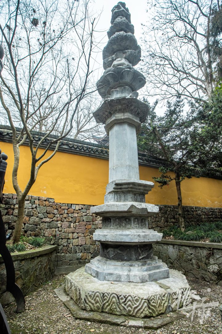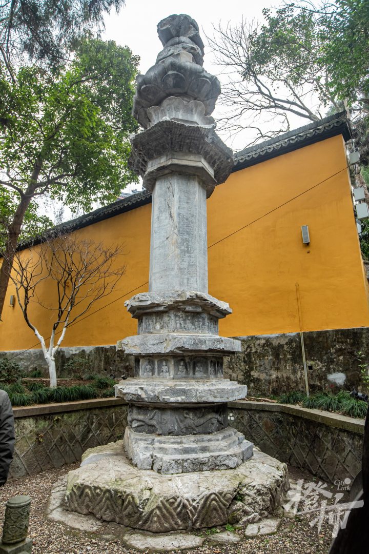 灵隐寺两经幢位于天王殿前东、西两侧,由吴越国王钱俶始建于北宋开宝二年(969年),原在钱氏家庙奉先寺,北宋景祐二年(1035年)灵隐寺住持延珊迁建于今址。它们共同见证了吴越国“纳土归宋”前,吴越国王最后的惆怅与毅然决然。
