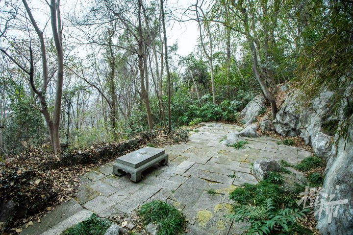 玉皇山南麓,八卦田旁的白云庵边上有一条石阶,沿台阶上去,半山腰就是“吴越郊坛”。遗址面积很大,有2850平方米。