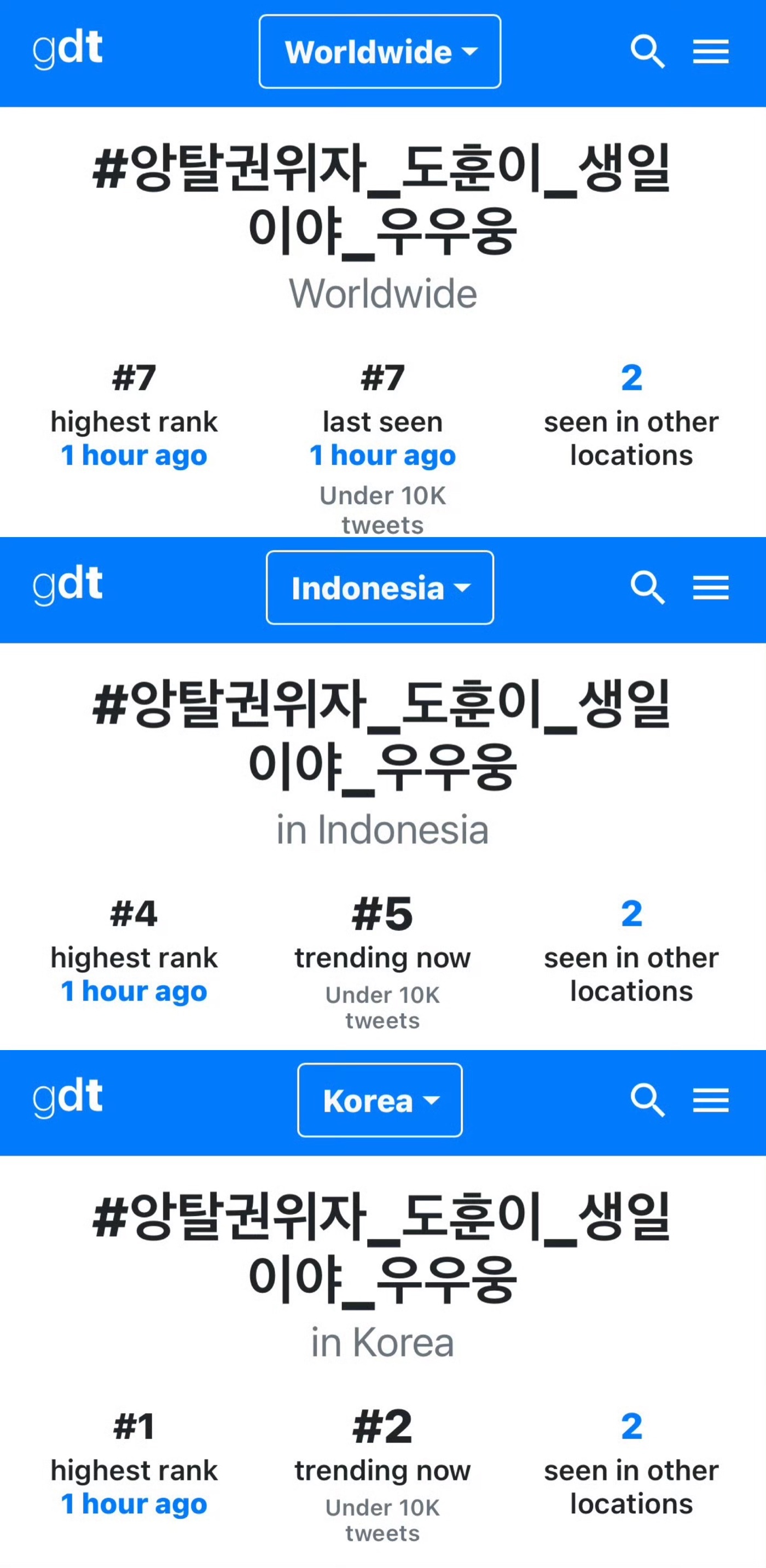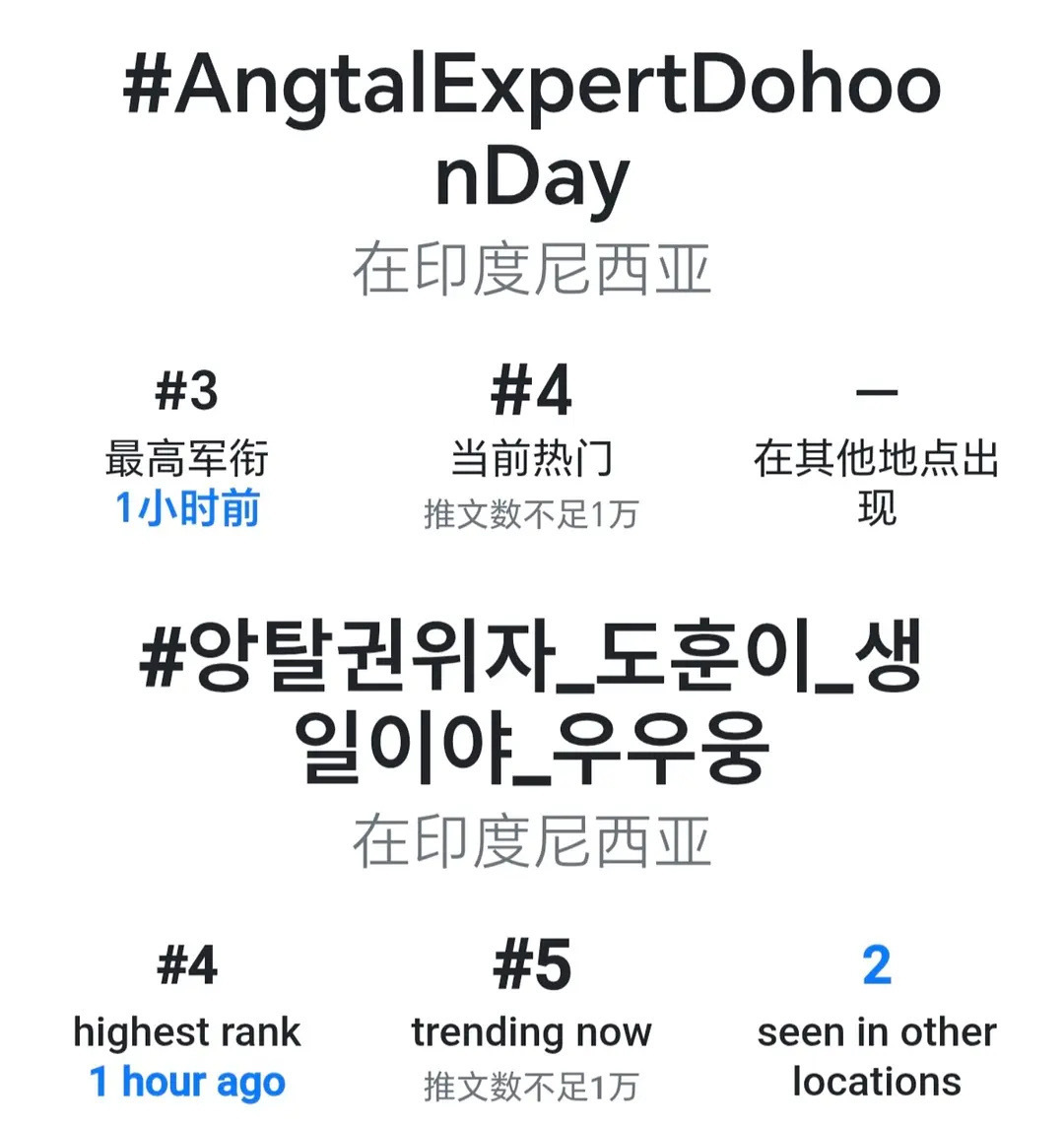金道勋生日韩趋第1/3 /6/10/11/18/27,世趋第7,印尼趋势第3/4