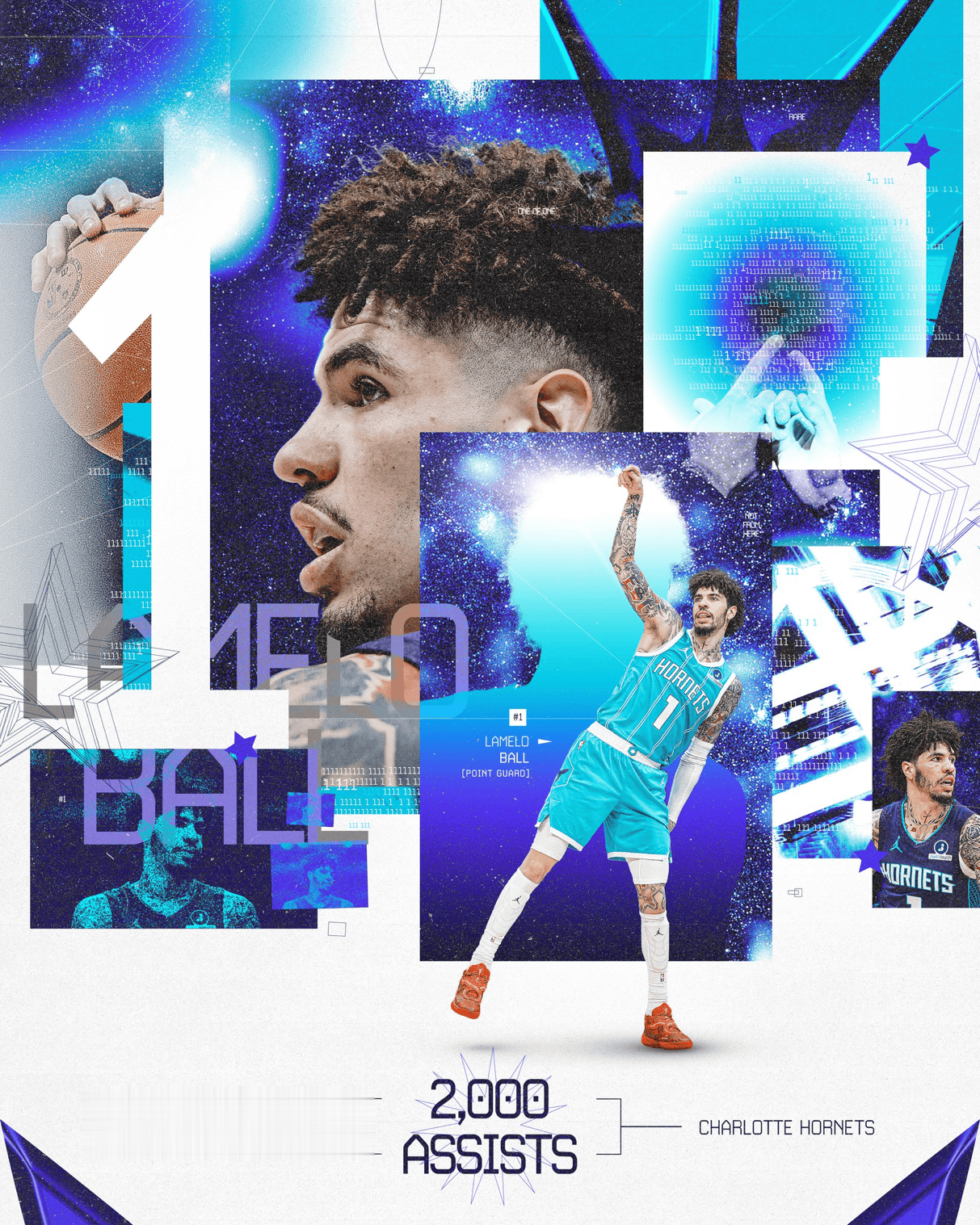 “拉梅洛-鲍尔成为NBA历史上第五位,在职业生涯前300场比赛中达成以下数据里程碑的球员:5000分、1500个篮板、2000次助攻。”