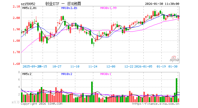 1月30日,截止午间收盘,创业板ETF广发(159952)涨0.80%,报2.017元,成交额1.94亿元。创业板ETF广发(159952)重仓股方面,宁德时代截止午盘涨2.93%,中际旭创涨4.07%,新易盛涨4.40%,东方财富跌1.73%,阳光电源涨3.30%,胜宏科技涨2.25%,汇川技术跌1.42%,迈瑞医疗跌1.49%,温氏股份涨0.90%,天孚通信涨11.92%。