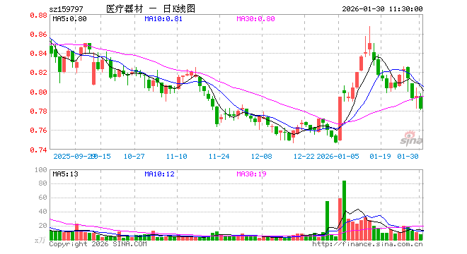 1月30日,截止午间收盘,医疗器械ETF汇添富(159797)跌1.64%,报0.782元,成交额625.00万元。医疗器械ETF汇添富(159797)重仓股方面,迈瑞医疗截止午盘跌1.49%,联影医疗跌1.40%,鱼跃医疗跌4.41%,新产业涨1.76%,爱美客跌2.83%,惠泰医疗涨0.27%,乐普医疗跌3.04%,福瑞医科涨0.32%,英科医疗跌1.13%,华大基因跌3.09%。