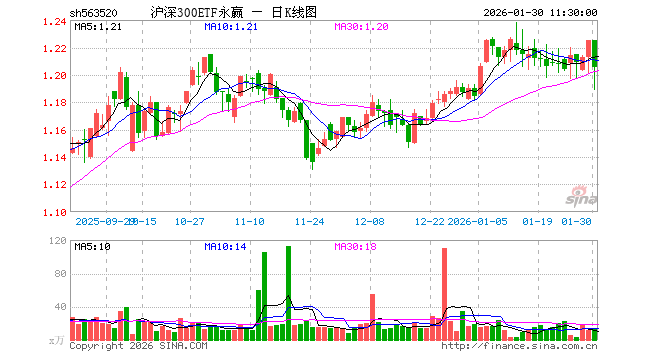 1月30日,截止午间收盘,沪深300ETF永赢(563520)跌1.63%,报1.205元,成交额1725.21万元。沪深300ETF永赢(563520)重仓股方面,宁德时代截止午盘涨2.93%,贵州茅台跌2.18%,中国平安跌1.81%,中际旭创涨4.07%,紫金矿业跌8.33%,招商银行涨0.65%,新易盛涨4.40%,美的集团涨0.95%,兴业银行跌0.21%,长江电力涨1.73%。