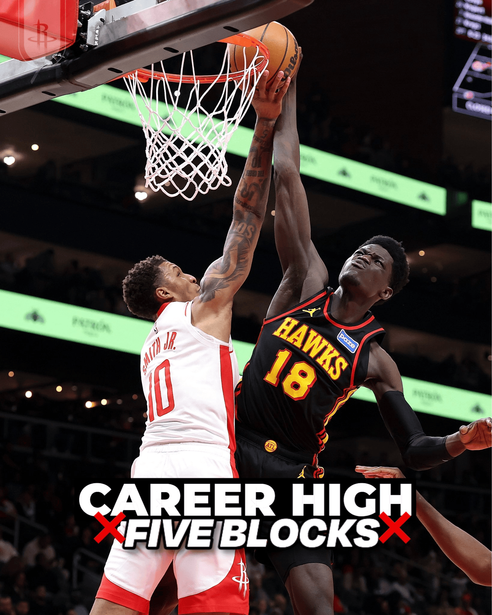 对此,火箭官方晒赛场照祝贺史密斯并配文道:“小贾巴里-史密斯今晚在防守端创下生涯新高,他在家乡球迷面前奉献了一场精彩的表演!”