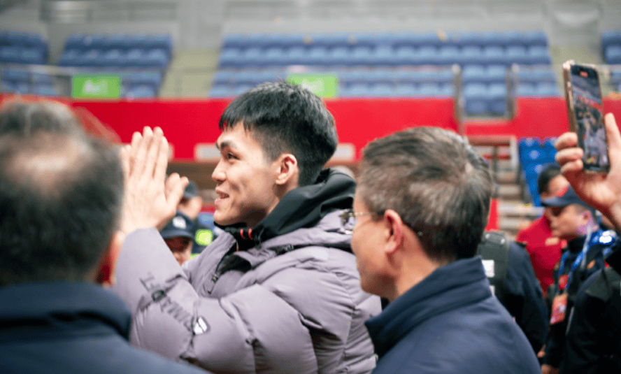 配文道:感谢江苏省广西商会“娘家人”的支持,同时还给现场球迷送来了广西特色水果和螺蛳粉,桂风入苏境,苏桂一家亲!