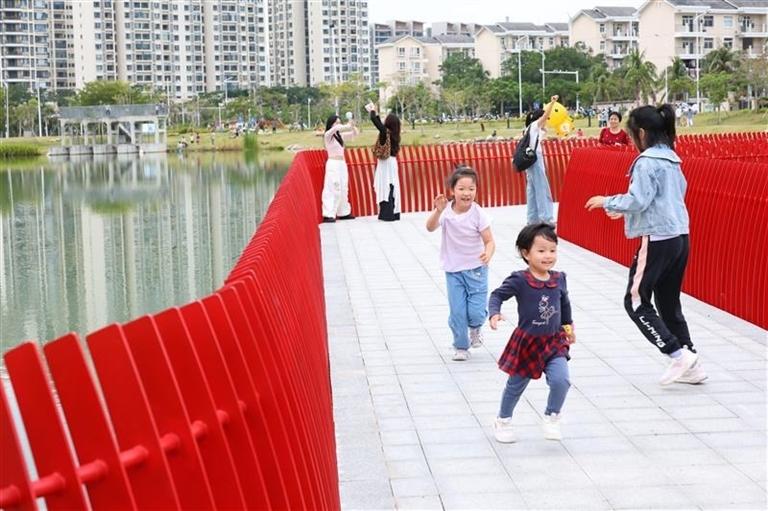 小朋友在三亚海螺馨苑公园里快乐玩耍。(资料图片)记者李学仕摄