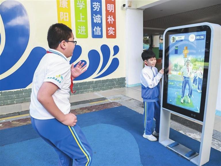 学生通过AI体育锻炼屏进行锻炼。(资料图片)记者陈聪聪摄